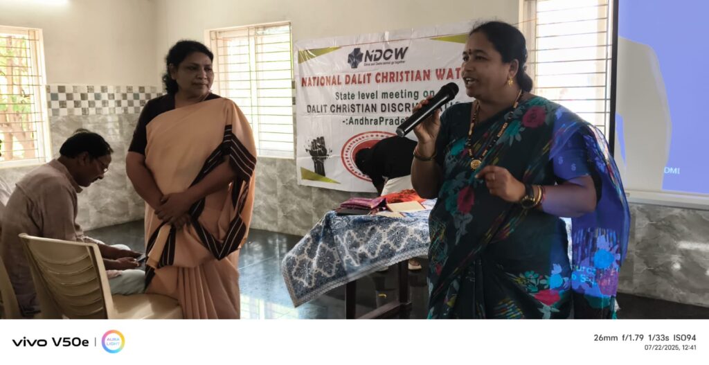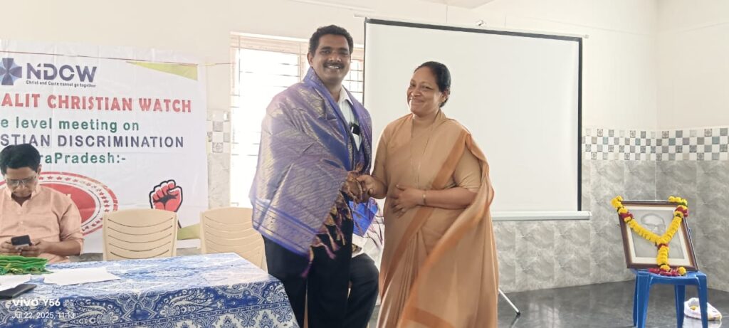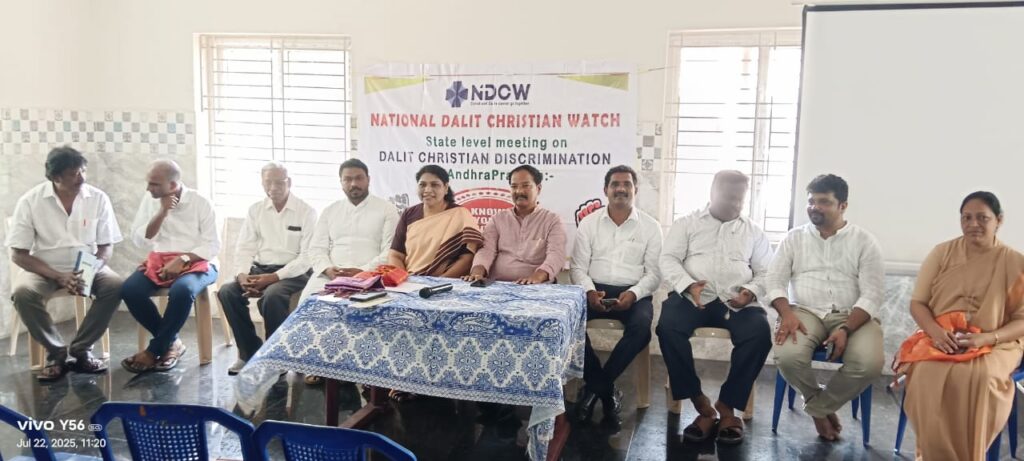 On 22nd July 2025, the National Dalit Christian Watch (NDCW) organized a thought-provoking State-level meeting in Visakhapatnam on the theme “Faith, Caste, and Identity: Dialogue on Dalit Christian Realities.” The event witnessed active participation from community members and was enriched by the insights of distinguished resource persons, including Fr. Vinod Amarlapudi, Mr. Sleeva Galleli, Fr. Thomas Pallithanam (Director, PARA), and Mr. Chitti Babu. The session was deeply engaging and left a lasting impact on all who attended.